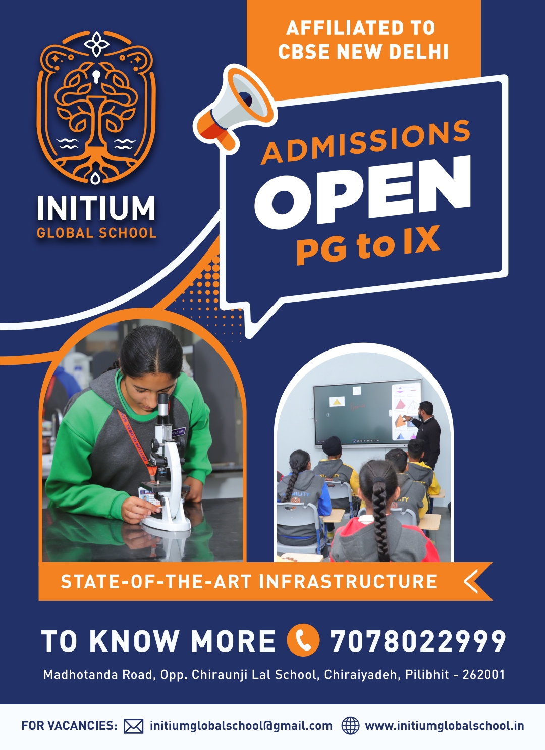 The serene city of Pilibhit houses INITIUM GLOBAL SCHOOL, a school that aims to shape young minds into thinking individuals by providing world-class education. Offering educational facilities for children in pre-primary (playgroup, pre-nursery, nursery and KG) to secondary classes, Initium Global School is a sanctuary for the very young and a nurturing ground for the impressionable. By stressing on learning by experience rather than by rote, Initium Global School seeks to replace ruthless competition in classrooms with collaborative growth and out-of-the-box thinking.